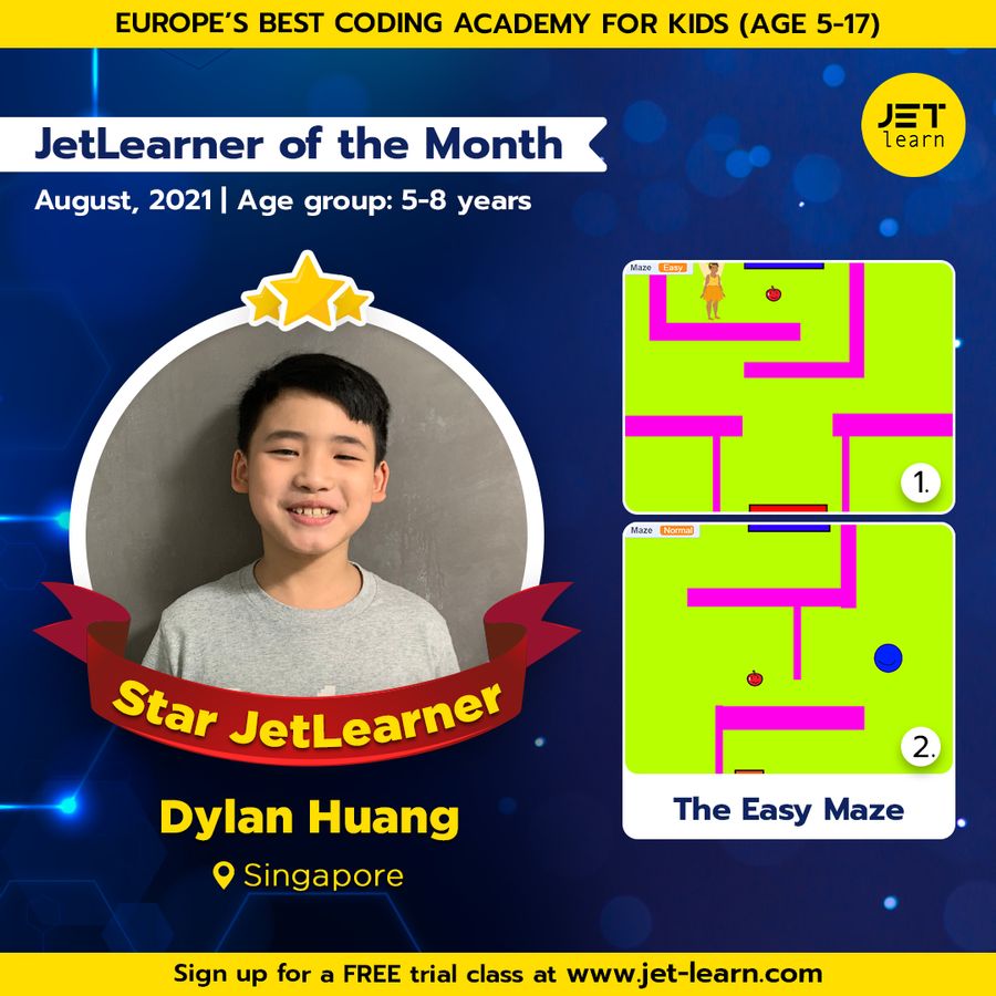 7-year-old Dylan is making maze games! At JetLearn, he is building games that help improve concentration and are a lot of fun. Dylan has been selected as the JetLearner of the Month for August.