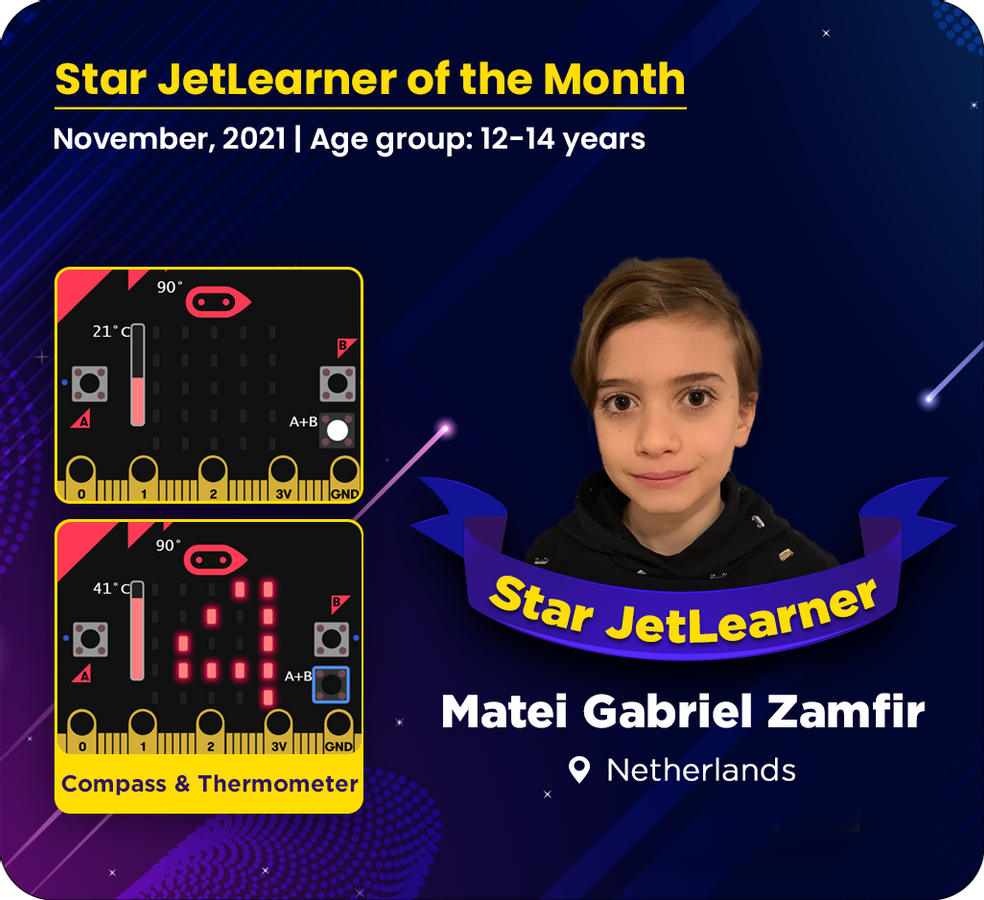 We are happy to announce Matei as the JetLearner of the Month for November in the age group of 12-14 years.