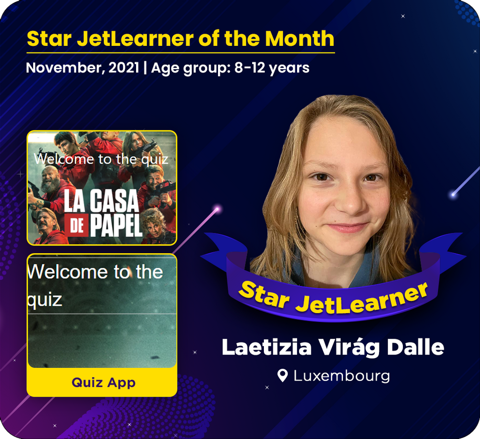 We are happy to announce Laetizia as the JetLearner of the Month for November in the age group of 8-12 years.