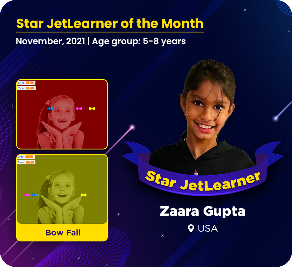 We are happy to announce Zaara as the JetLearner of the Month for November in the age group of 5-8 years.