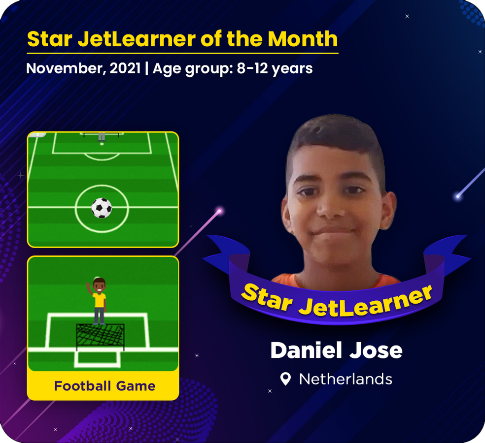 We are happy to announce Daniel as the JetLearner of the Month for November in the age group of 8-12 years.