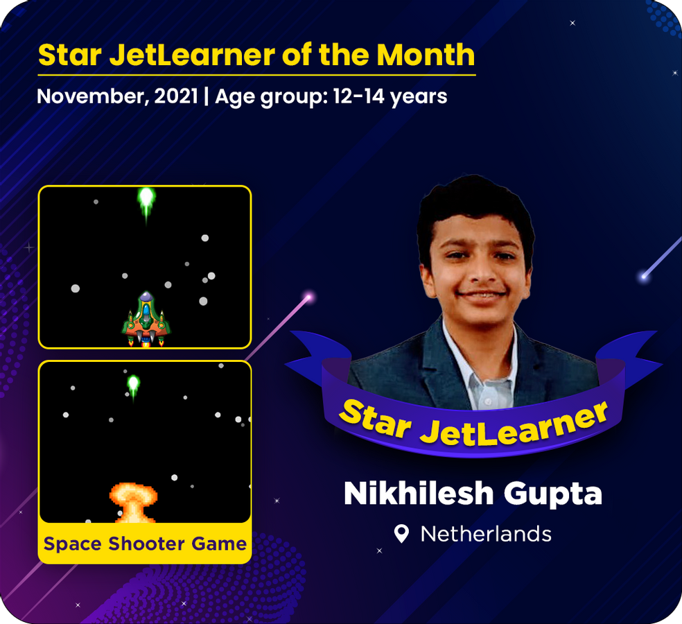 We are happy to announce Nikhilesh as the JetLearner of the Month for November in the age group of 12-14 years.