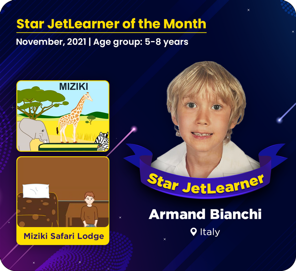 We are happy to announce Armand as the JetLearner of the Month for November in the age group of 5-8 years.